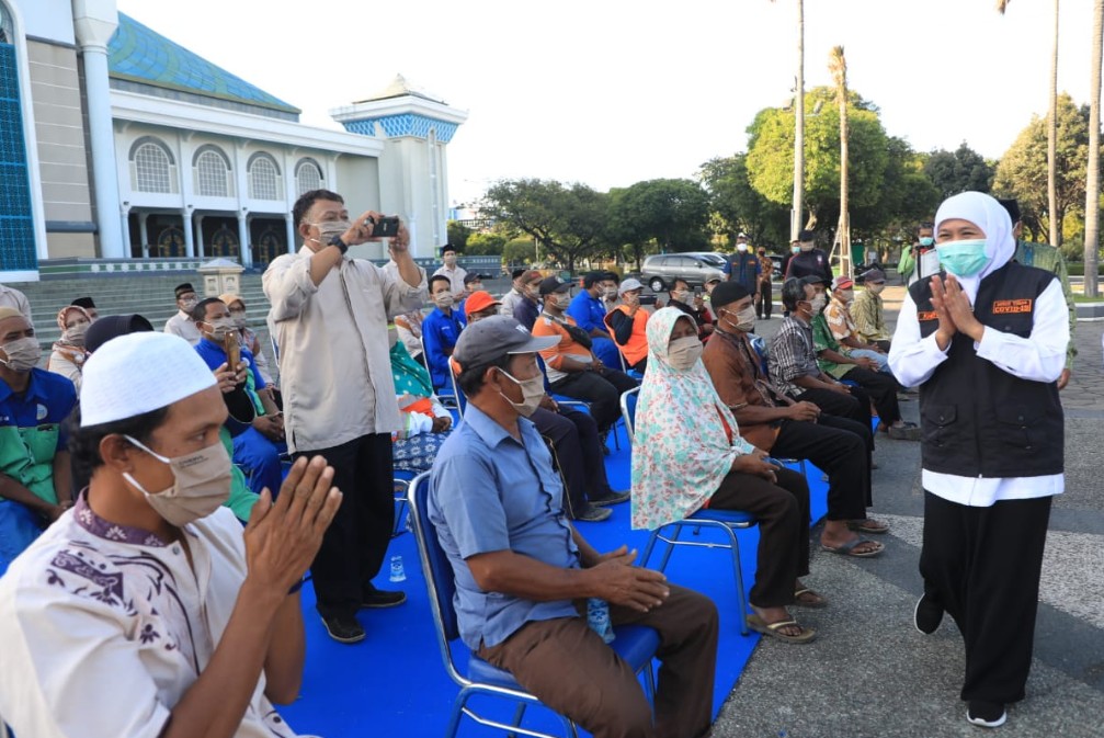 Surabayatoday.id, Surabaya – Sebagai wujud syukur 75 tahun Provinsi Jawa Timur, Gubernur Jawa Timur Khofifah Indar Parawansa bersapa dengan penjaga makam, rel kereta api dan Ppetugas kebersihan masjid (marbot) dan masyarakat kurang mampu di sekitar area Masjid Nasional Al Akbar Surabaya, Selasa (13/10). Bertempat di halaman masjid, Khofifah membagikan bantuan uang dan sembako kepada para penerima.