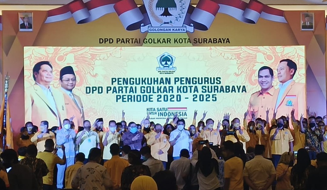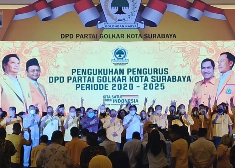 Surabayatoday.id, Surabaya – Kepengurusan DPD Golkar Surabaya periode 2020-2025 resmi dikukuhkan, Minggu (18/10) di Hotel Wyndham, Surabaya. Ketua DPD Golkar Surabaya Arif Fathoni menyatakan siap mundur dari jabatan bila kelak perolehan kursi parlemen di pemilu 2024 mendatang menurun.