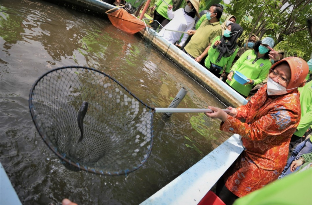 Surabayatoday.id, Surabaya – Wali Kota Surabaya Tri Rismaharini bersama jajarannya melakukan panen raya hidroponik di Mini Agro Wisata, komplek kantor Dinas Ketahanan Pangan dan Pertanian (DKPP) di Jalan Pagesangan II nomor 56 Surabaya. Panen raya itu dimulai dengan memanen sayur-sayuran seperti sawi, terong, tomat serta kangkung.
