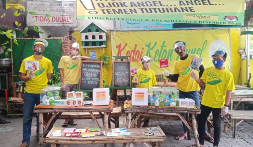 “Para pelaku UMKM seperti kami ini sangat riskan terpapar Covid-19 karena sering berhadapan dengan masyarakat utamanya pembeli. Diakui maupun tidak, kami para pelaku usaha kecil ini juga bagian dari pelayan publik,” tutur pemilik Angkringan Bala Dewa ini.