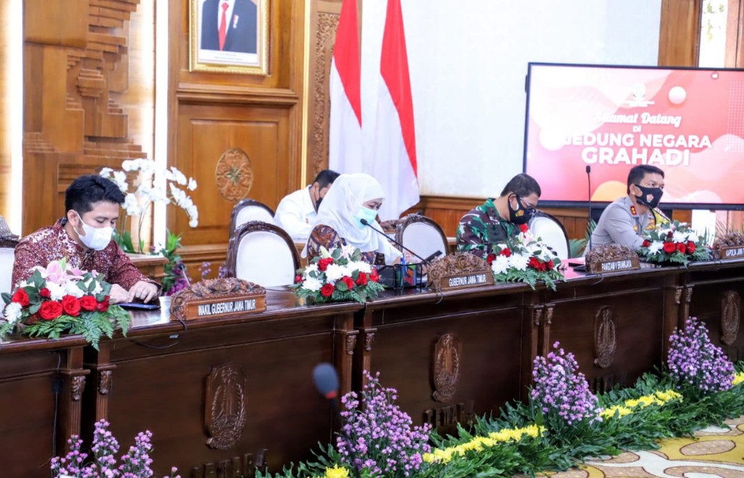 Wakil Gubernur Jawa Timur Emil Elestianto Dardak saat menghadiri rapat koordinasi penegakan disiplin protokol kesehatan dan penanganan Covid-19 di gedung Negara Grahadi, meminta masyarakat Jatim agar tidak lengah. Menurut dia, dari rakor didapatkan update dari Kemenkes, tentang adanya beberapa daerah di Indonesia yang juga mengalami kenaikan kasus.