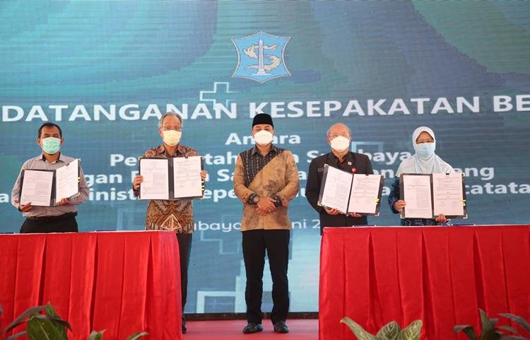 SURABAYATODAY.ID, SURABAYA – Upaya Pemkot Surabaya memperluas jangkauan pelayanan administrasi kependudukan dan pencatatan sipil (adminduk) terus dilakukan. Terbaru, Wali Kota Surabaya Eri Cahyadi melakukan Penandatanganan Nota Kesepakatan Bersama (MoU), antara Pemkot Surabaya dengan 38 rumah sakit (RS), dan 80 bidan maupun klinik di Kota Pahlawan.