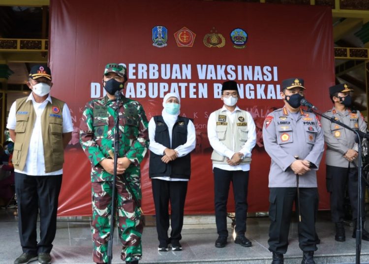 Untuk mengantisipasi menyebarnya kasus mutasi baru dan melonjaknya kasus positif COVID-19, Pemerintah Provinsi Jawa Timur bersama Forkopimda Jatim, Penerintah Kota Surabaya dan Pemerintah Kabupaten Bangkalan secara terpadu melakukan berbagi upaya guna memutus mata rantai penyebarannya.
