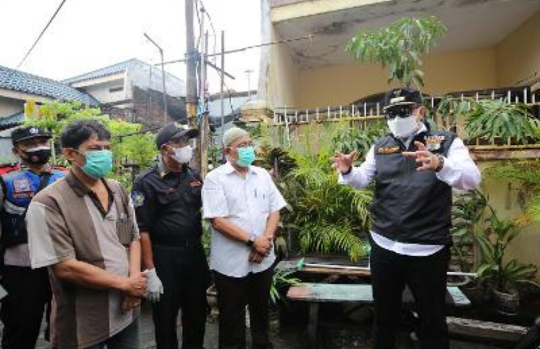SURABAYATODAY.ID, SURABAYA – Wali Kota Surabaya Eri Cahyadi berkeliling ke kampung-kampung padat penduduk untuk mengevaluasi munculnya klaster keluarga di sejumlah perkampungan, Senin (28/6). Salah satunya di Kampung Simo Sidomulyo Kelurahan Petemon, Kecamatan Sawahan, di mana terdapat satu keluarga terkonfirmasi positif Covid-19.