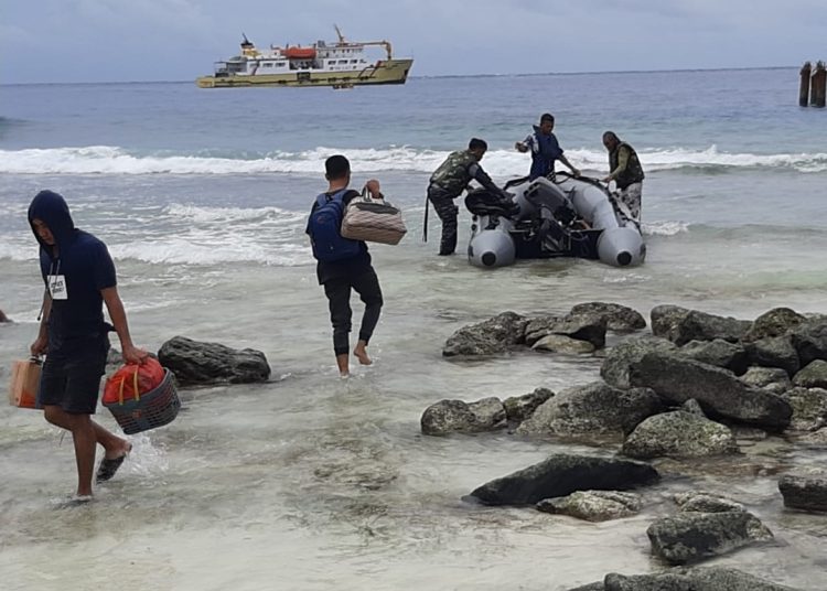 Begitu pun sebaliknya, mereka membantu menaikkan penumpang dan barang dari daratan menuju kapal di saat cuaca buruk terjadi. Menurut Komandan Lanal Melonguane Letkol Marinir Adi Sucipto, S.T.,M.Tr.Hanla, selama ini secara rutin prajurit Posal Miangas membantu masyarakat baik evakuasi (embarkasi/debarkasi) penumpang dan barang apabila kapal Sabuk Nusantara (Tol Laut) tidak bisa sandar.