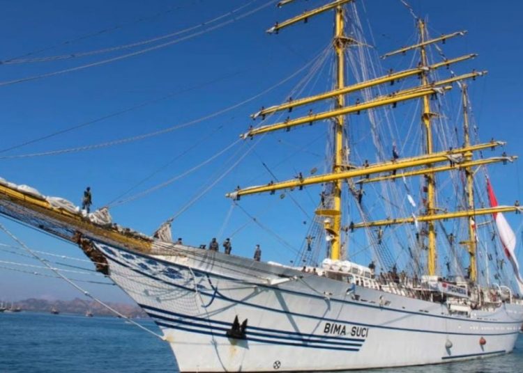 SURABAYATODAY.ID, MANGGARAI – Etape pelayaran pertama KRI Bima Suci-954 sejak dilepas keberangkatannya oleh Panglima Koarmada II Laksda TNI Dr. Iwan Isnurwanto, SH.,M.A.P, M.Tr.(Han) dari Surabaya berakhir di dermaga Labuhan Bajo, Kabupaten Manggarai barat, NTT, Kamis (29/7). Begitu sandar di dermaga, Komandan KRI Bima Suci selaku Komandan satgas, Letkol Laut (P) Waluyo,S.H.,M.Tr.Hanla, yang didampingi Palaklat KJK, Letkol Laut (P) Khairul Anwar, beserta perwakilan Taruna/Taruni AAL Ke-68 tingkat III disambut dengan adat tradisi (tuak curi manu kapu) yang ditujukan sebagai ucapan selamat datang.