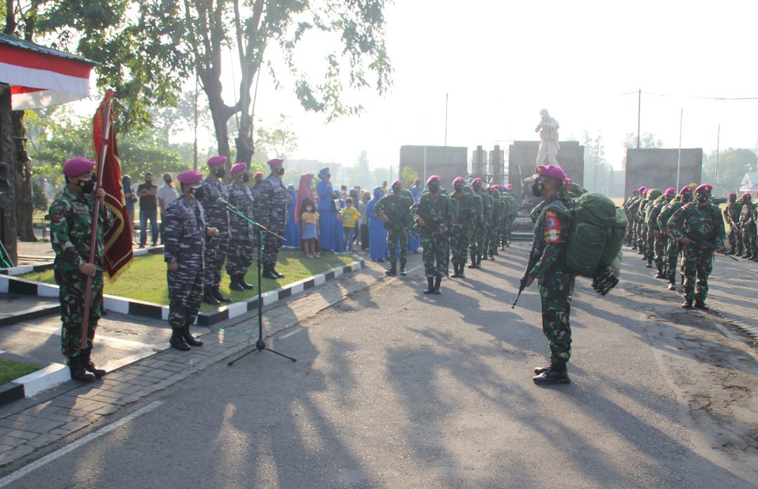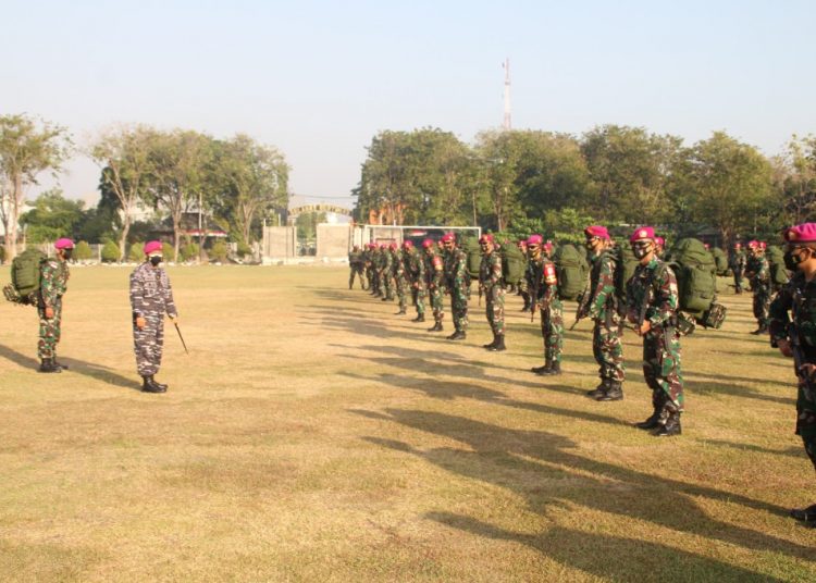 SURABAYATODAY.ID, SURABAYA – Komandan Batalyon Infanteri 5 Marinir Letkol Marinir Widarta Kusuma, S.E., M.Tr.Opsla melepas keberangkatan prajuritnya. Sebanyak 130 prajurit Pasmar 2 yang tergabung dalam Satgas Marinir Ambalat XXVII tahun 2021 yang dipimpin oleh Komandan Kompi (Danki) Ghurango Yonif 5 Marinir Kapten Marinir Cilvo Dwi Setiawan, S.Sthan akan berangkat menuju daerah penugasan untuk melaksanakan pengamanan perbatasan antara Negara Republik Indonesia dengan Negara Malaysia di pulau Sebatik, Kalimantan Utara.