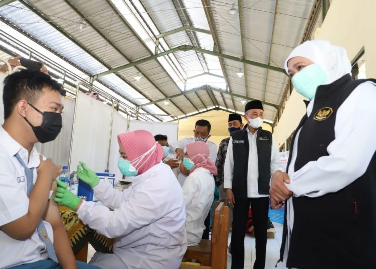 SURABAYATODAY.ID, MOJOKERTO – Gubernur Jawa Timur, Khofiah Indar Parawansa mencanangkan vaksinasi pelajar serentak di 38 kabupaten/kota se Jawa Timur. Di sela kunjungannya meninjau vaksinasi di SMKN 1 Kota Mojokerto, Khofifah mengatakan mengalokasikan 38 ribu dosis vaksin tahap I kepada 38 ribu siswa SMA/SMK se Jawa Timur, yang didistribusikan melalui Dinas Kesehatan (Dinkes) kabupaten/kota.