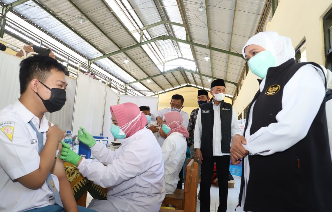 “Karena itu saya mencanangkan vaksinasi serentak untuk pelajar SMA/SMK se Jawa Timur, dengan harapan herd immunity yang akan menjadi pelandaian dalam pengendalian Pandemi Covid-19 ini bisa segera kita wujudkan di Jawa Timur” tegas Khofifah.