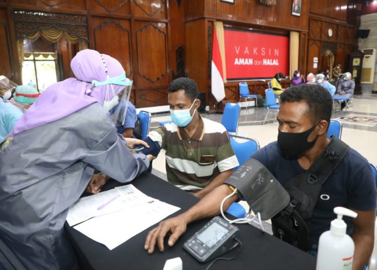 SURABAYATODAY.ID, SURABAYA – Gubernur Jawa Timur, Khofifah Indar Parawansa menggelar vaksinasi bagi warga Flobamora – Nusa Tenggara Timur (NTT) yang berdomisili di Kota Surabaya. Vaksinasi dilaksanakan di Ruang Binaloka Adhikara, Kantor Gubernur Jatim, Jumat (6/8).
