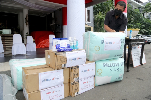 Selain itu, bantuan itu juga datang dari Informa sebanyak 1.340 bantal, 2.200 tisue antiseptik, dan 420 liter hand sanitizer. Bantuan itu diterima Wali Kota Surabaya Eri Cahyadi di Balai Kota Surabaya, Senin (9/8).