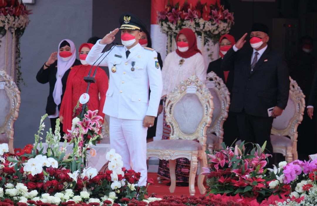 Wali Kota Surabaya Eri Cahyadi yang bertindak sebagai inspektur upacara menyampaikan upacara tetap berjalan khidmat meskipun dengan jumlah undangan dan protokol kesehatan (prokes) yang ketat. Pasukan Pengibar Bendera (Paskibra) pun juga terbatas yakni berjumlah 12 petugas.