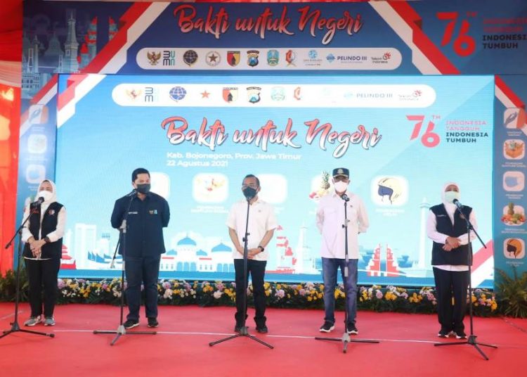 SURABAYATODAY.ID, BOJONEGORO – Menteri Sekretaris Negara (Mensesneg) Pratikno, Menteri Perhubungan (Menhub) Budi Karya Sumadi dan Menteri BUMN Erick Thohir secara bersama-sama datang ke Jawa Timur. Ketiganya meninjau pelaksanaan vaksinasi di SMPN 1 Padangan, Bojonegoro, Minggu (22/8). Pada vaksinasi bertajuk ‘Bakti Untuk Negeri’ini, kedatangan mereka didampingi Gubernur Jatim Khofifah Indar Parawansa.