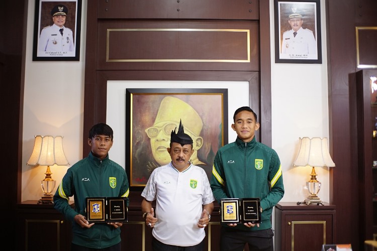SURABAYATODAY.ID, SURABAYA – Wakil Wali Kota Surabaya Armuji kedatangan ‘tamu spesial’, Selasa (31/8). Armuji dikunjungi dua pemain Persebaya di ruang kerjanya.