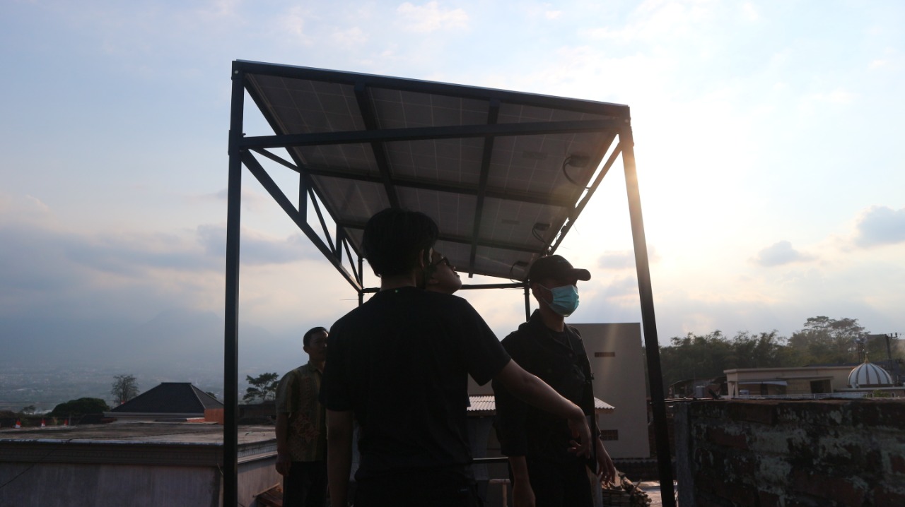 Untuk memenuhi kebutuhan listrik peternakan ini, Riko bersama timnya memasang sistem on-grid photovoltaic pada peternakan di Kecamatan Karangploso, Kabupaten Malang yang menjadi lokasi kegiatan. On-grid berarti tegangan yang dihasilkan panel surya tersebut diubah menjadi tegangan AC, kemudian disambungkan dengan jala-jala PLN.