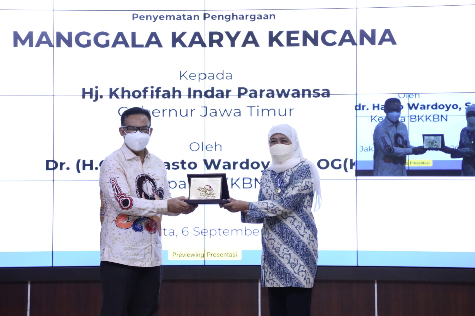 SURABAYATODAY.ID, JAKARTA – Kepedulian dan dukungannya terhadap kemajuan program Keluarga Berencana (KB) dan kesejahteraan keluarga di Jatim, diapreasiasi pemerintah pusat. Gubernur Jawa Timur Khofifah Indar Parawansa mendapatkan Tanda Penghargaan Manggala Karya Kencana (MKK) Tahun 2021 dari Badan Kependudukan dan Keluarga Berencana (BKKBN) RI, Senin (6/9).