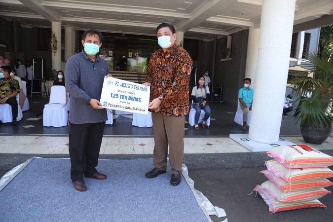 Bantuan tersebut diterima Asisten Perekonomian dan Pembangunan Kota Surabaya, M Ikhsan, mewakili Wali Kota Surabaya, Eri Cahyadi. Bantuan diserahterimakan di halaman Balai Kota Surabaya.