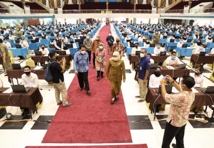 SURABAYATODAY.ID, SURABAYA – Pelaksanaan Seleksi Kompetensi Dasar (SKD) Calon Pegawai Negeri Sipil (CPNS) dan Seleksi Kompetensi Pegawai Pemerintah dengan Perjanjian Kerja (PPPK) guru dan non-guru di lingkungan Pemprov Jatim tahun 2021 dimulai. Gubernur Jawa Timur Khofifah Indar Parawansa meninjau langsung pelaksanaan SKD dan seleksi kompetensi tersebut di Graha Unesa Surabaya, Selasa (14/9).