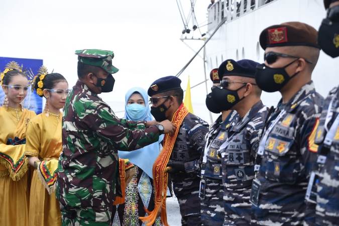 Tampak hadir menyambut di dermaga, Wakil Gubernur (Wagub) AAL, Laksma TNI Rudhi Aviantara didampingi Wakil Ketua CBS Jalasenastri AAL, Ny. Hesti Rudhi Aviantara, Danguspurla Koarmada II Laksma TNI Hersan, wakil wali kota Tarakan, Ketua DPRD Kota Tarakan, Paban III Dikpersal, Dirpers AAL, Dirlog AAL, Wadan Lantamal XIII, Danlanud Anang Busra, Kadeppel AAL, Para Asisten Danlantamal XIII, Dandim 0907 Tarakan dan tokoh masyarakat lainnya.
