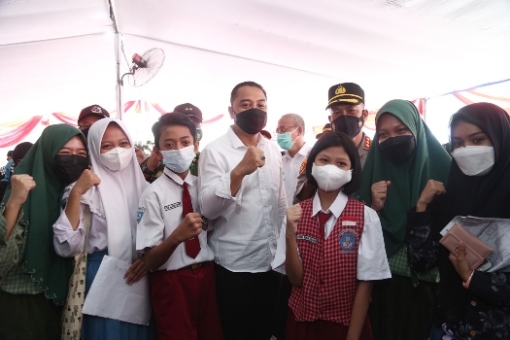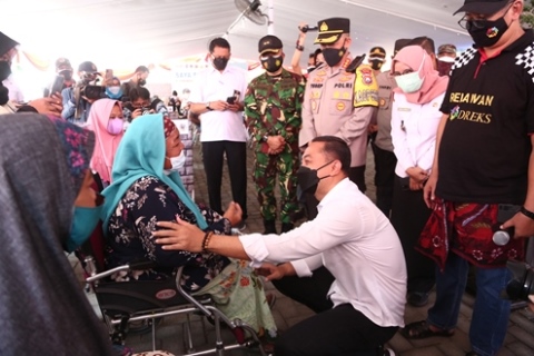 Dalam tinjauannya, Wali Kota Eri sempat menyapa warga disabilitas yang hendak vaksin. Para pelajar SD dan SMP yang hendak divaksin juga disapa. Mereka pun diajak berswafoto dengan Eri.
