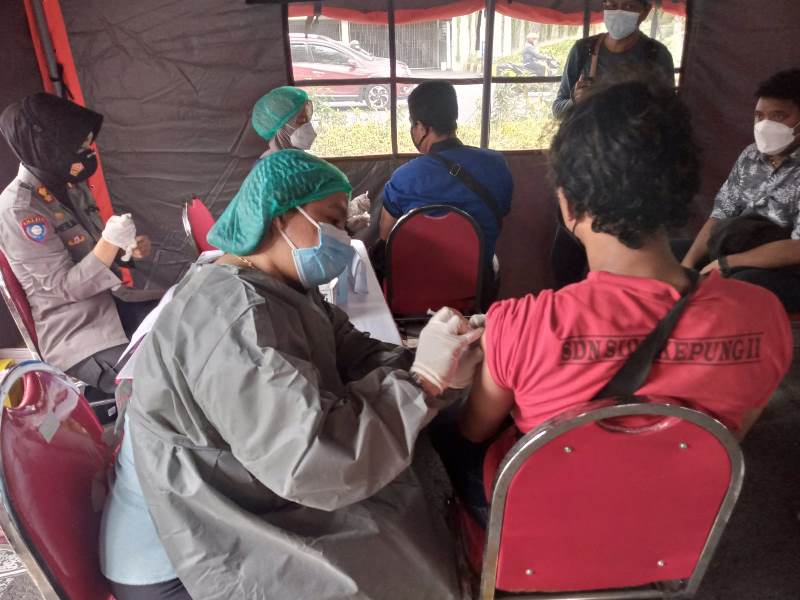 Jika belum vaksin baik dosis pertama atau kedua, polisi mengarahkan pengendara ke tenda vaksinasi. Peserta vaksin cukup menyerahkan KTP lalu melakukan pendaftaran ke petugas registrasi. Proses pendaftaran hingga penyuntikan vaksin, hanya membutuhkan waktu sekitar 5 menit.