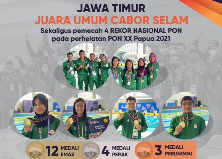 SURABAYATODAY.ID, SURABAYA – Atlet cabang olahraga selam kolam asal Jawa Timur berhasil memecahkan rekor dalam Pekan Olahraga Nasional (PON) XX Papua 2021. Tidak tanggung-tanggung, empat orang atlet yang dikirim, kesemuanya berhasil meraih hasil maksimal.