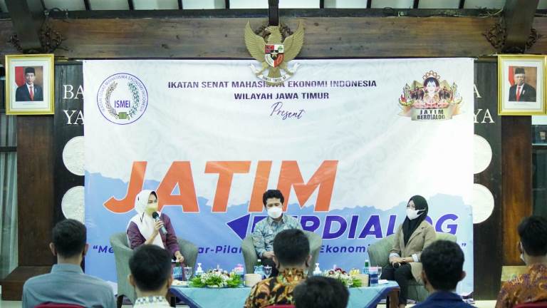 Hal ini disampaikannya saat menjadi pembicara pada acara “Jatim Berdialog 2021”. Acara ini diselenggarakan oleh Ikatan Senat Mahasiswa Ekonomi Indonesia (ISME) dengan tema “Ekraf dan Pariwisata Sebagai Pilar Utama Pemulihan Ekonomi Nasional di Jatim” di Pendapa Kota Batu.