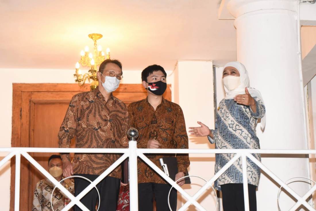 SURABAYATODAY.ID, SURABAYA – Gubernur Jawa Timur Khofifah Indar Parawansa menerima Duta Besar (Dubes) Jepang untuk Indonesia H.E. Kanasugi Kenji bersama Konjen Jepang Takeyama Kenichi di Gedung Negara Grahadi Surabaya, Senin (25/10) malam. Pertemuan tersebut merupakan kunjungan official pertama bagi Dubes Jepang di Provinsi Jawa Timur.