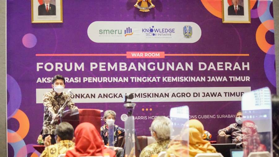 Hal ini disampaikan Emil saat membuka War Room Forum Pembangunan Daerah 2021 terkait Akselerasi Penurunan Tingkat Kemiskinan Jawa Timur “Menurunkan Angka Kemiskinan Agro di Jawa Timur” di Hotel Harris, Surabaya, Rabu (27/10). Menurutnya, hal tersebut penting mengingat wilayah pedesaan menyumbang jumlah kemiskinan terbesar daerah dengan persentase sebesar 15,05 persen per Maret 2021.