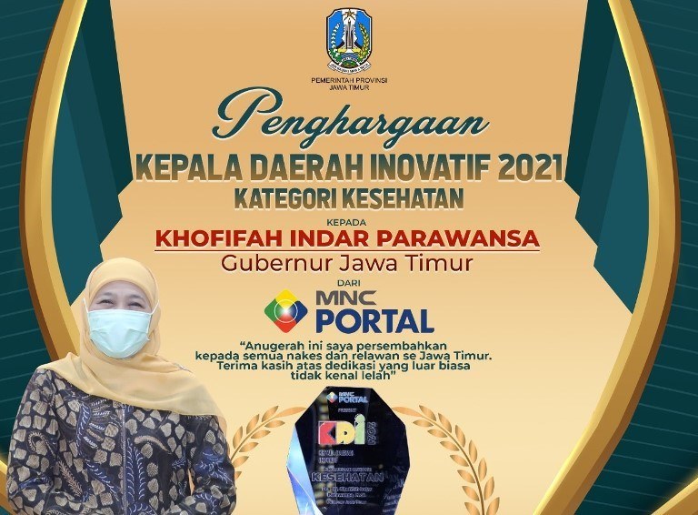 Penghargaan itu diberikan sebagai bentuk apresiasi terhadap berbagai inovasi yang dilakukan orang nomor satu di Jatim tersebut melalui inovasi Jatim Tanggap Covid-19. Inovasi yang dilakukan Gubernur Khofifah itu dinilai telah memberikan dampak positif yang signifikan terhadap masyarakat utamanya pada bidang kesehatan dalan penanganan pandemi Covid-19.