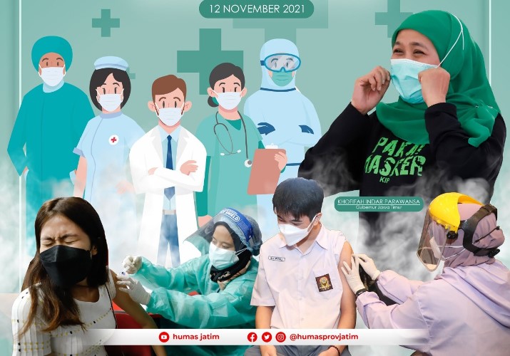 Data pesebaran Covid-19 Jawa Timur per 11 November menunjukkan cakupan vaksinasi dosis pertama di Jawa Timur mencapai 65,63 persen, lalu dosis dua mencapai 40,62 persen. Pasien aktif positif tinggal 315 orang atau setara dengan 0,08 persen.