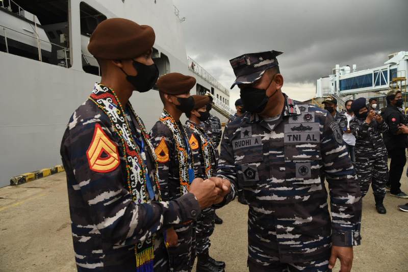 Kedatangan para Taruna AAL disambut Komandan Pangkalan TNI Angkatan Laut (Danlanal) Balikpapan, Kolonel Laut (P) Siswo Widodo. Mereka disambut dengan tradisi pengalungan bunga oleh Danlanal Balikpapan dan instansi vertikal Kaltim kepada Komandan KRI SBY-591, Palaklat, dan perwakilan Taruna.