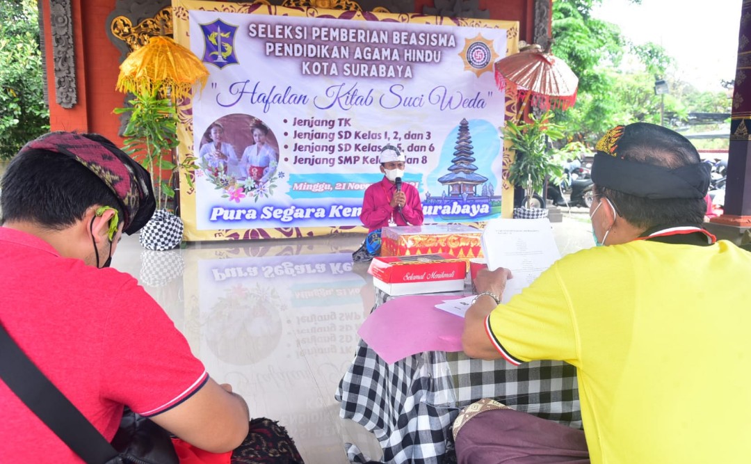 Sementara itu, Ketua Panitia Seleksi Hafalan Kitab Suci Weda, Ida Bagus Adi Muliadi, mengucapkan terimakasih kepada Dispendik Surabaya atas terlaksananya beasiswa hafalan Kitab Suci Weda tersebut.