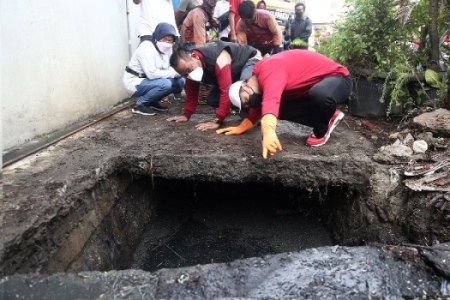 Pemkot Surabaya langsung mengambil langkah cepat. Bahkan, Wali Kota Surabaya Eri Cahyadi terjun langsung ke kawasan-kawasan yang berpotensi terjadi genangan. Eri juga sekaligus mencarikan solusi di lapangan dengan melihat setiap permasalahannya.