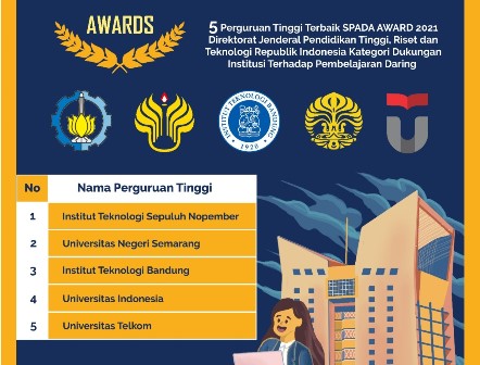 SURABAYATODAY.ID, SURABAYA – Institut Teknologi Sepuluh Nopember (ITS) mendapat apresiasi dalam Sistem Pembelajaran Daring (SPADA) Award 2021 kategori Perguruan Tinggi Terbaik: Dukungan Institusi terhadap Pembelajaran Daring, Senin (13/12). Penghargaan ini diberikan kepada perguruan tinggi yang mampu memberikan dukungan terbaik terhadap penyelenggaraan dan pelaksanaan pembelajaran daring.