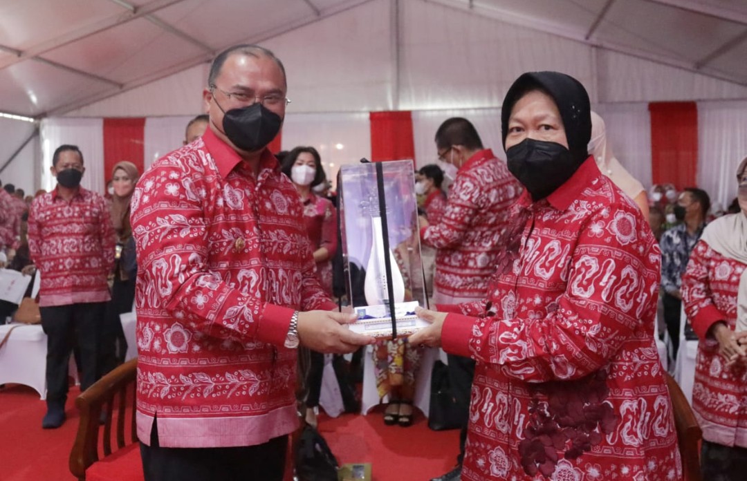 Kepada undangan dan hadirin, Mensos Tri Rismaharini menyampaikan salam Presiden Joko Widodo, Wakil Presiden KH Ma’ruf Amin dan Menko Pembangunan Manusia dan Kebudayaan Muhadjir Effendy.