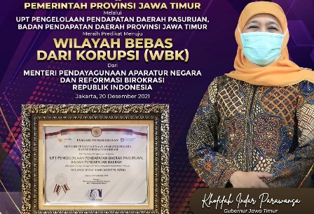 Predikat WBK tersebut merupakan anugerah yang ketiga kalinya diterima Bapenda Jatim selama tiga tahun berturut-turut. Pada 2019, anugerah predikat WBK juga diperoleh Bapenda Jatim melalui UPT PPD Samsat Jombang dan pada tahun 2020 diperoleh UPT PPD Samsat Nganjuk. Ketiganya memperoleh predikat WBK setelah melalui proses penilaian ketat berdasarkan kualitas pelayanan yang baik dan berintegritas.