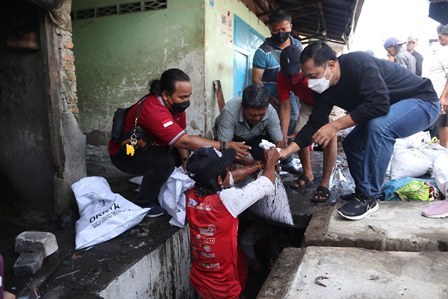 Selanjutnya, Eri menuju ke Jalan Sombo Gang 5, Kecamatan Semampir Surabaya. Di lokasi kedua ini, Eri masuk ke gang-gang menyapa warga yang kerja bakti. Tak segan, ia turut serta membantu warganya mengeruk saluran air.