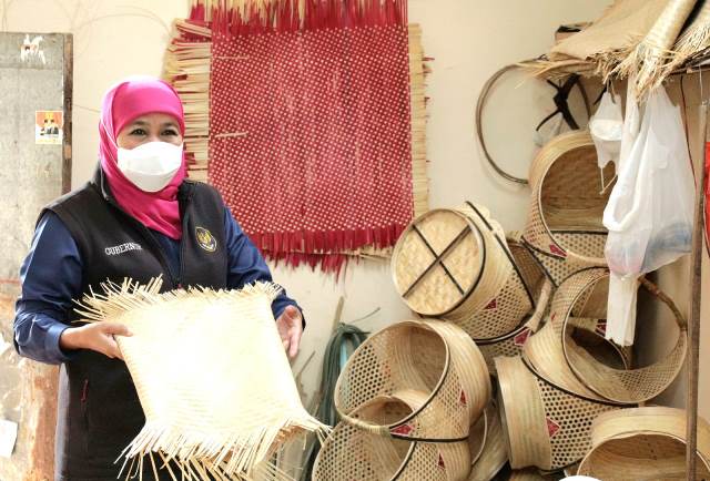 Gubernur Jatim Khofifah Indar Parawansa saat berkunjung ke UD Bambu Murni, Desa Ringinagung, Kabupaten Magetan.