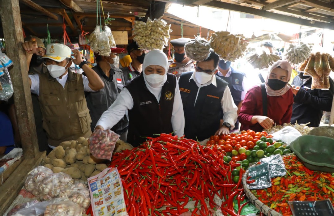 Dalam peninjauan tersebut Gubernur Khofifah didampingi Wakil Wali Kota Pasuruan Adi Wibowo beserta jajaran dinas terkait. Pengecekan harga daging, minyak goreng hingga bawang merah, cabai merah dan cabai rawit ditanyakan secara langsung kepada para pedagang. Fakta di lapangan menunjukan bahwa harga daging sapi maupun ayam masih dalam kondisi stabil. Tetapi harga cabai merah, cabai rawit dan bawang merah mengalami kenaikan dua sampai lima ribu per kilonya.