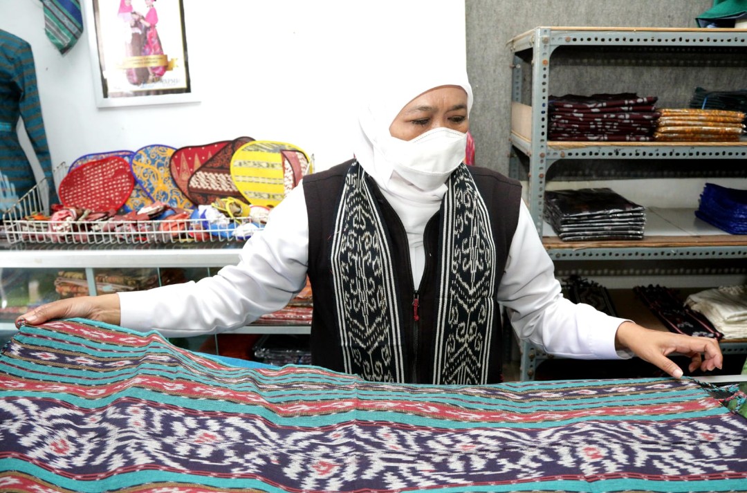 Bagaimana Khofifah bisa mengusulkan desa devisa? Ternyata ia kesengsem dengan kerajinan dari desa tersebut. Ini saat ia mengunjungi Butik Kerajinan Tenun Ikat Paradila di Desa Parengan, Maduran Lamongan, Sabtu (5/3) siang.