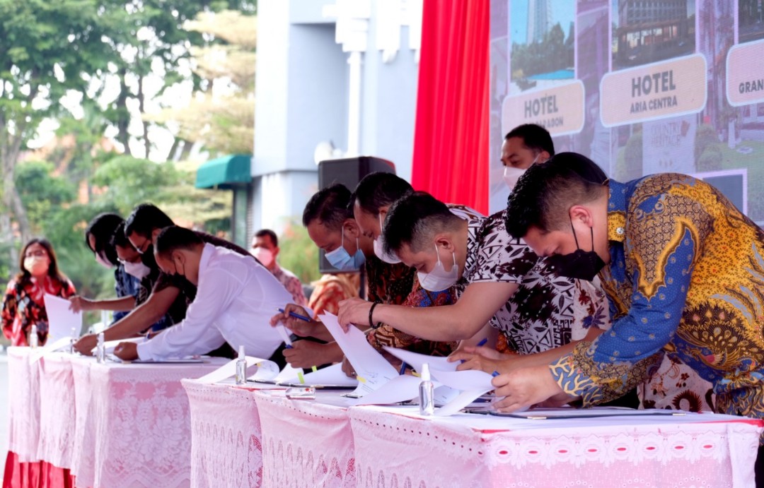 SURABAYATODAY.ID, SURABAYA – Pemkot Surabaya meneken nota kesepakatan bersama dengan 46 hotel di Surabaya. Penandatanganan itu dilaksanakan di Balai Kota.