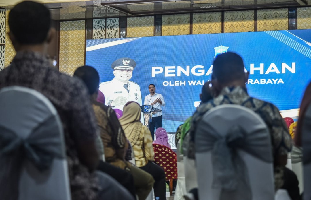SURABAYATODAY.ID, SURABAYA – Wali Kota Surabaya Eri Cahyadi memberikan pengarahan kepada jajaran Pemerintah Kota (Pemkot) Surabaya di Convention Hall Jalan Arief Rahman Hakim, Surabaya, Kamis (24/3). Pengarahan kali ini dikhususkan kepada jajaran pemkot yang bersentuhan langsung dengan warga atau yang langsung memberikan pelayanan kepada warga, mulai dari lurah, camat, kepala puskesmas dan rumah sakit, Bagian Pemerintahan dan Kesejahteraan Rakyat, Dinas Kependudukan dan Pencatatan Sipil, Dinas Kesehatan, dan Dinas Sosial, serta dinas lainnya.