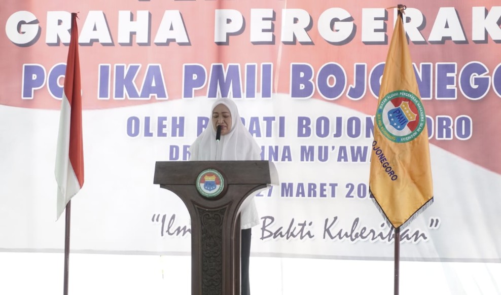SURABAYATODAY.ID, BOJONEGORO – Bupati Bojonegoro Anna Mu’awanah meresmikan gedung Graha Pergerakan PC Ikatan Keluarga Alumni Pergerakan Mahasiswa Islam Indonesia (IKA PMII) Bojonegoro, Minggu (27/3). Graha Pergerakan berada di Desa Pacul Kecamatan/Kota Bojonegoro.