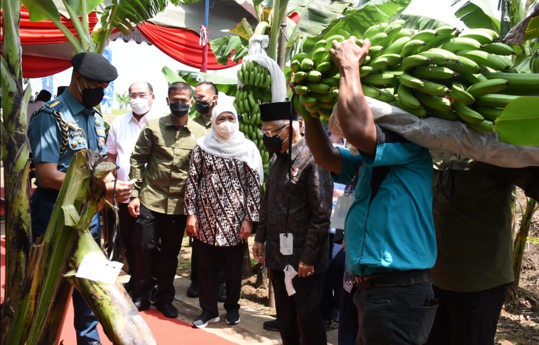 “Jawa Timur terus berupaya meningkatkan produksi, baik dari segi kuantitas, kontinuitas, maupun juga kualitas,” kata Khofifah saat mendampingi Wakil Presiden RI Ma’ruf Amin dalam acara panen perdana pisang cavendish di Desa Pulung, Kecamatan Pulung, Kabupaten Ponorogo, Rabu, (30/3).