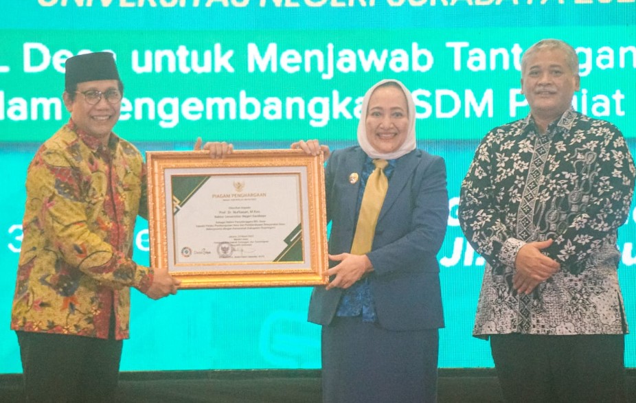 SURABAYATODAY. ID, BOJONEGORO – Menteri Desa PDTT Abdul Halim Iskandar, Bupati Bojonegoro Anna Mu’awanah, serta Rektor Unesa Prof. Dr. Nurhasan, M.Kes. meresmikan sekaligus memulai kegiatan perkuliahan mahasiswa Rekognisi Pembelajaran Lampau (RPL) Desa di Graha Universitas Negeri Surabaya (Unesa), Rabu (30/3). Pada perkuliahan perdana ini, hadir 619 mahasiswa RPL Desa asal Bojonegoro yang akan menempuh pendidikan di Unesa.