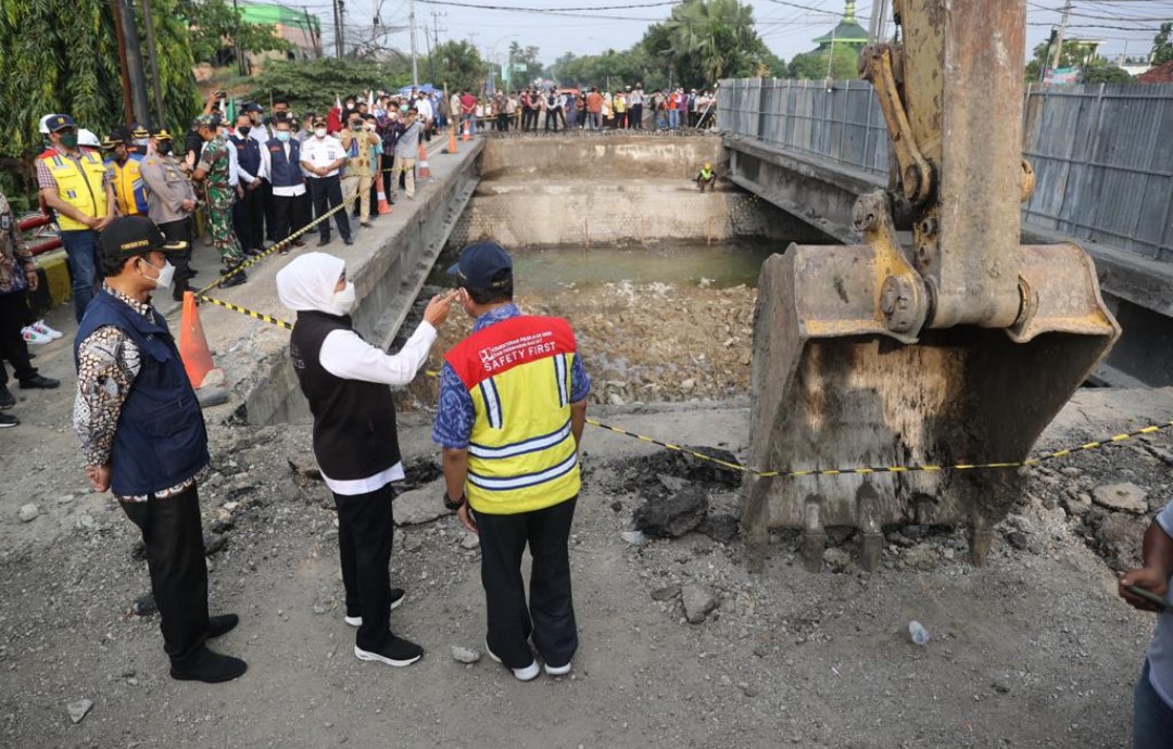 Khofifah Cek Percepatan Revitalisasi Jembatan Ngaglik Lamongan yang Ambles