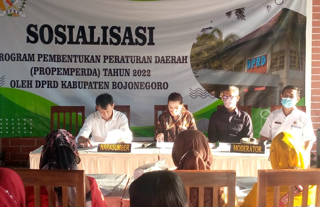 Kegiatan sosialisasi Propemperda tahun 2022 ini sendiri juga menghadirkan beberapa narasumber. Di antaranya anggota Komisi C DPRD Bojonegoro Natasha Devianti, serta Zulma Satriyo Putra dari komisi A.