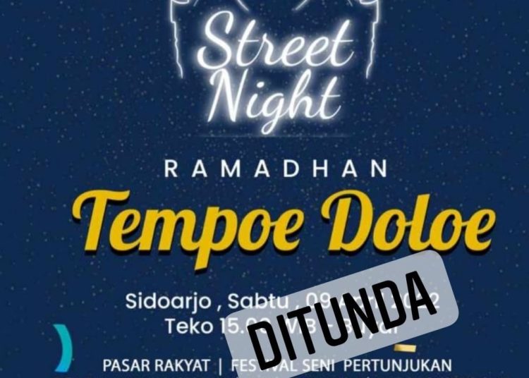 SURABAYATODAY.ID, SIDOARJO– Pemerintah kabupaten (Pemkab) Sidoarjo memutuskan menunda pelaksanaan festival Gajah Mada Street Night Sidoarjo Tempo Doeloe. Penundaan ini sampai dengan pemberitahuan lebih lanjut.