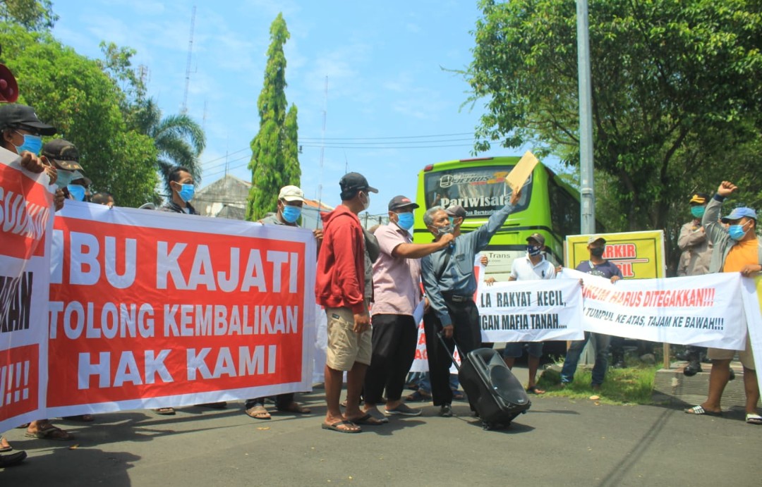 Warga Desa Tambakoso, Kecamatan Waru, Sidoarjo menggelar aksi demo di depan kantor Kejaksaan Negeri (Kejari) Sidoarjo.